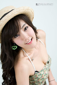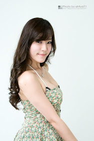 Glad she's back with this nice studio set; with her in a simple shoulder-less dress and a classy satin-like evening dress.